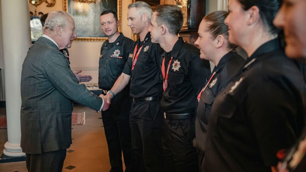 The King meets emergency responders involved in Union Street fire at Dumfries House